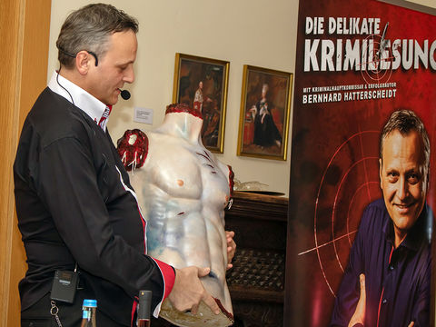 Bernhard Hatterscheidt ist vom Fach. Der waschechte Kriminalhauptkommissar gewährt bei seinen gefragten Krimiabenden einen spannenden und vor allem realitätsnahen Einblick in die Arbeit der Kriminalpolizei, sowie die Verbindung zwischen künstlerischer Freiheit und Wirklichkeit.
