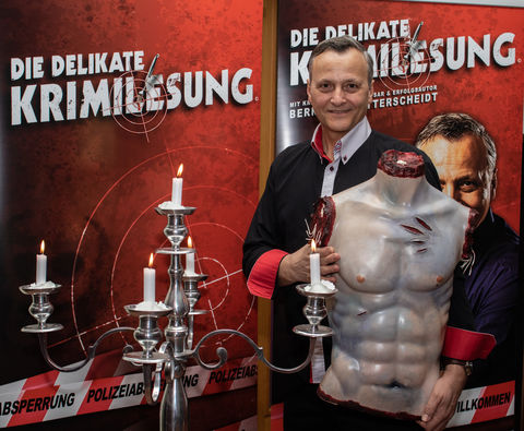 Begleitet wird er dabei von seiner reizenden Ehefrau Miriam, die die weiblichen Rollen spricht und ihm in der Show assistiert. Nach der Lesung plaudert der Kriminalhauptkommissar auch gerne aus dem kriminalistischen Nähkästchen und beantwortet mit etwas Glück Ihre Fragen rund um 'Mord und Totschlag' sowie zu seiner Ermittlungsarbeit.